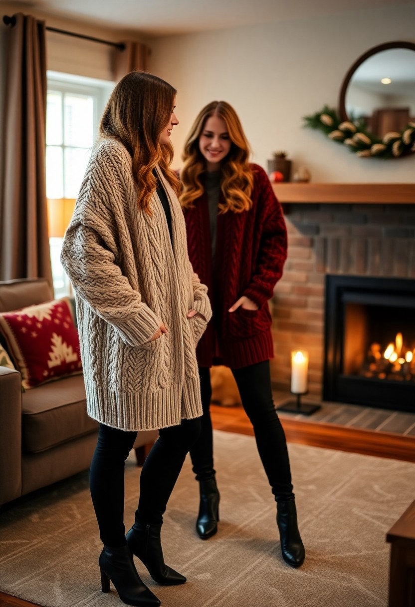 - Play With Textures: Combine wooly cardigans with smooth leather boots and soft leggings for a balanced look.
